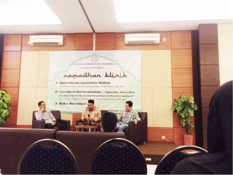“Selain itu Apoteker harus dapat mengontrol penggunaan obat bukan sebagai komoditi biasa, tetapi obat adalah barang kesehatan. Adapun peran Apoteker dalam berorganisasi juga harus lebih banyak berperan aktif.” lanjutnya di acara yang terbuka untuk apoteker wilayah Tasikmalaya dan sekitarnya dengan tanpa dipungut biaya.