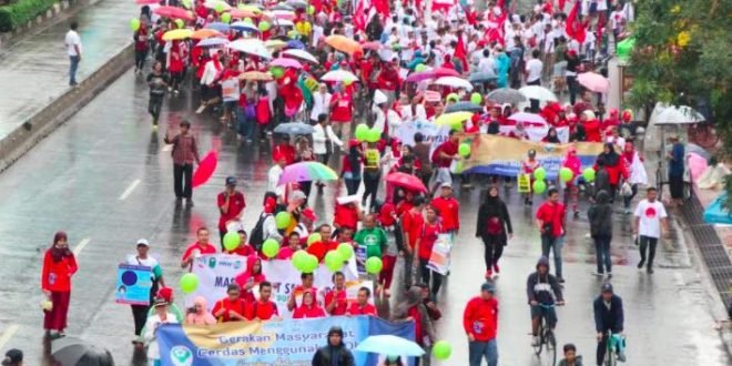 “Hari ini kita berkumpul disini dalam rangka mendukung hari kesehatan nasional karena masyarakat harus sehat agar Indonesia Kuat, “pesannya.