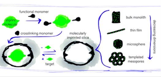 Seperti pada Gambar 1, MIP dibuat memlui proses pencampuran molekul template dengan monomer fungsional. Monomer fungsional mengandung gugus fungsi Y, yang kemudian akan mengalami reaksi pengikatan silang dengan pengikat silang (cross-linker)yang cocok, kemudian ruang tiga dimensi polimer akan terbentuk, dimana molekul template dikelilingi oleh monomer. Setelah itu molekul template akan dihilangkan dan meninggalkan ruang yang sama dengandengan molekul template dalam hal interaksi molekular, ukuran dan bentuk.8