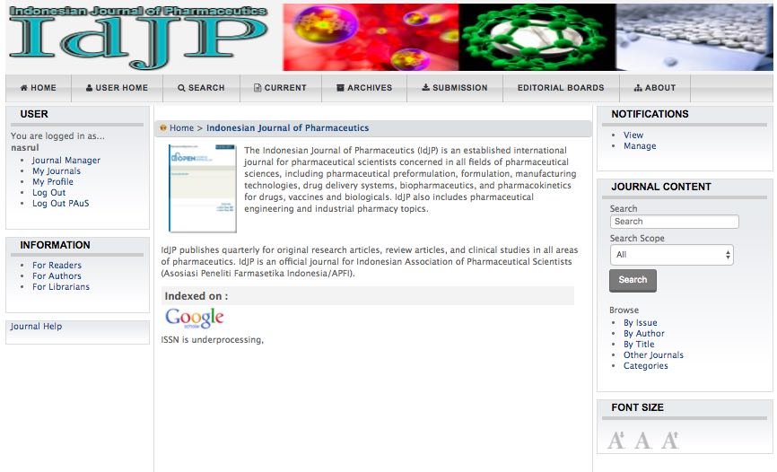 Dikutip dari situsnya, IdJP merupakan jurnal internasional dengan artikel ilmiah berbahasa Inggris yang difokuskan untuk mempublikasikan penelitian seluruh bidang farmasetika seperti praformulasi, formulasi, teknologi manufaktur, sistem penghantaran obat, biofarmasetika, dan farmakokinetik obat, vaksin, dan sediaan biologis. Selain itu juga menerima topik pharmaceutical engineering dan farmasi industri.