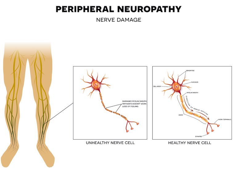 Neuropati perifer menggambarkan kerusakan pada sistem saraf perifer. Gangguar fungsi dan gejala tergantung pada jenis saraf (motorik, sensorik, atau otonom) yang rusak. Neuropati perifer merupakan efek samping yang umum untuk beberapa agen kemoterapi seperti taxanes, platinum agents, vinca alkaloids, thalidomide, dan bortezomib.