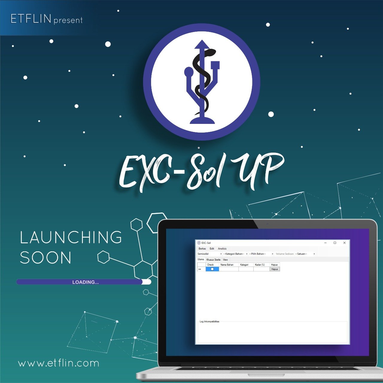 Farmasetika.com – Sekelompok mahasiswa Farmasi Universitas Padjadjaran (Unpad) yang tergabung dalam Etflin Team mengembangkan produk aplikasi/perangkat lunak (software) yang bernama EXC Sol UP. Produk aplikasi preformulasi pertama di Indonesia bahkan belum ada di dunia.