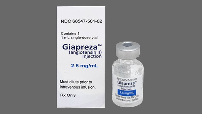 Giapreza (Angiotensin II) ini menjadi pengobatan terbaru untuk syok septik dikarenakan Giapreza menjadi yang pertama dan satu-satunya vasopressor yang mengandung angiotensin II yang disetujui oleh FDA3. Persetujuan FDA terhadap Giapreza didasarkan pada hasil uji coba secara acak, double-blid, dengan studi control-plasebo ATHOS-3 (Treatment of Hight-Output Shock) pada 321 pasien dengan syok septik atau distributive yang tetap hipotensi meskipun sudah terapi penambahan cairan tubuh dan vasopressor konvensional. Hasil yang didapatkan sebanyak 70% pasien yang mendapatkan terapi Giapreza mencapai target MAP yaitu ≥ 75 mmHg dibandingkan dengan plasebo dibandingkan dengan 23% pasien yang mendapatkan plasebo dengan diketahui nilai signifikansi sebesar <0,0001 dimana menyatakan kedua hasil tersebut berbeda signifikan dan didapatkan waktu rata-rata untuk mencapai titik akhir target MAP adalah sekitar 5 menit4.