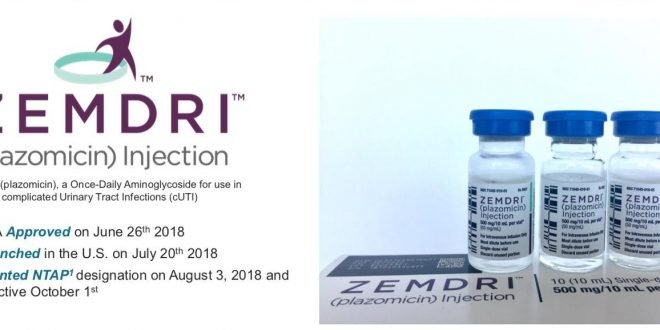 Zemdri digunakan untuk mengobati orang dewasa yang mengalami infeksi saluran kemih komplikasi (cUTI) termasuk infeksi ginjal yang disebabkan oleh bakteri tertentu. obat ini biasanya digunakan ketika tidak ada pilihan obat lainnya atau obat-obat yang digunakan sudah resisten. Zemdri (Plazomicin) adalah antibiotik spektrum luas yang memiliki aktivitas terhadap bakteri Enterobacteriaceae, Escherichia coli, Klebsiella pneumonia, Proteus mirabilis, Pseudomonas aeroginasi, dan Staphylococcus sp termasuk S. Aureus (MRSA) yang banyak resisten terhadap metisilin. Zemdri berkerja dengan cara berikatan dengan subunit ribosom bakteri 30S, sehingga akan menghambat sintesis protein dari bakteri tersebut. Zemdri memiliki aktivitas bakterisidal.