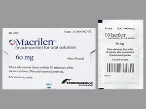 Macrilen® mengandung 60 mg macimorelin, setara dengan 68 mg macimorelin acetate. Zat tambahan yang digunakan antara lain lactose monohydrate, crospovidone, sodium stearyl fumarate, saccharin sodium and colloidal silicon dioxid. Ketika akan digunakan Macrilen® ditambahkan dengan 120 mL air sehingga diperoleh larutan macimorelin rekonstitusi sebesar 0.5 mg/mL. Proses ini harus dilakukan oleh tenaga kesehatan professional. Obat ini disimpan pada suhu 2-8°C (36-46°F) dan harus segera digunakan maksimal 30 menit setelah direkonstitusi [2].