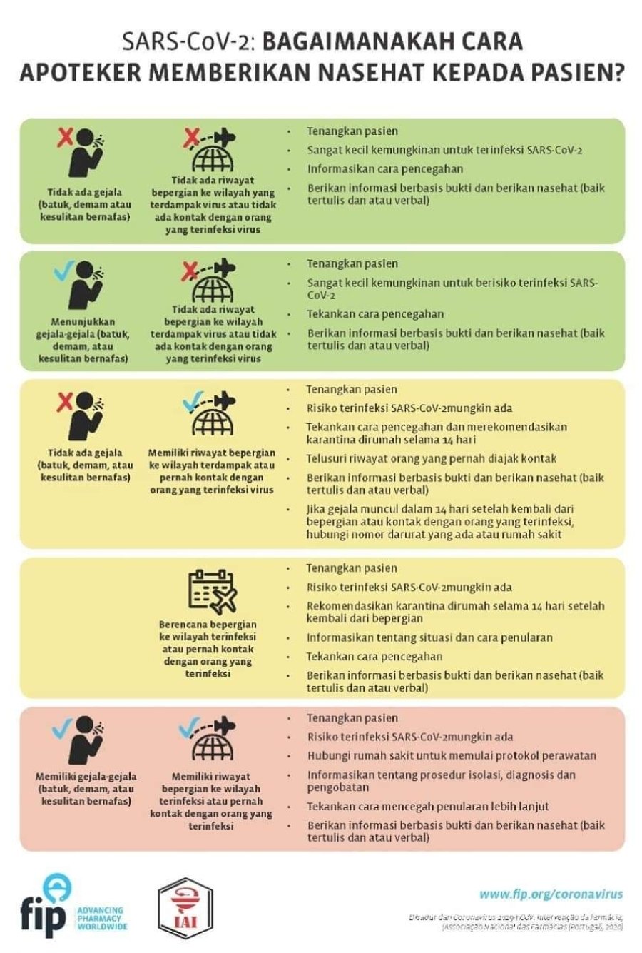 Panduan yang telah di translate ke bahasa Indonesia dengan judul SARS-CoV-2: Cara Apoteker Memberikan Nasehat kepada Pasien tersedia di situs resmi FIP.