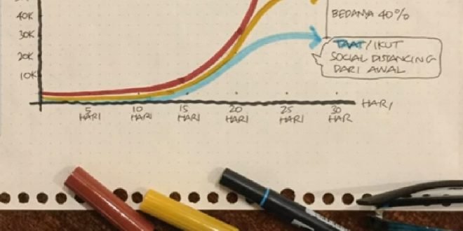 “Jika kita taat, disiplin dan mau kurangi interaksi sosial di awal 14 hari ini atau melakukan Social Distancing seperti di gambar warna biru maka penyebaran bisa jauh berkurang dan bisa dikontrol dengan baik.” Lanjutnya.
