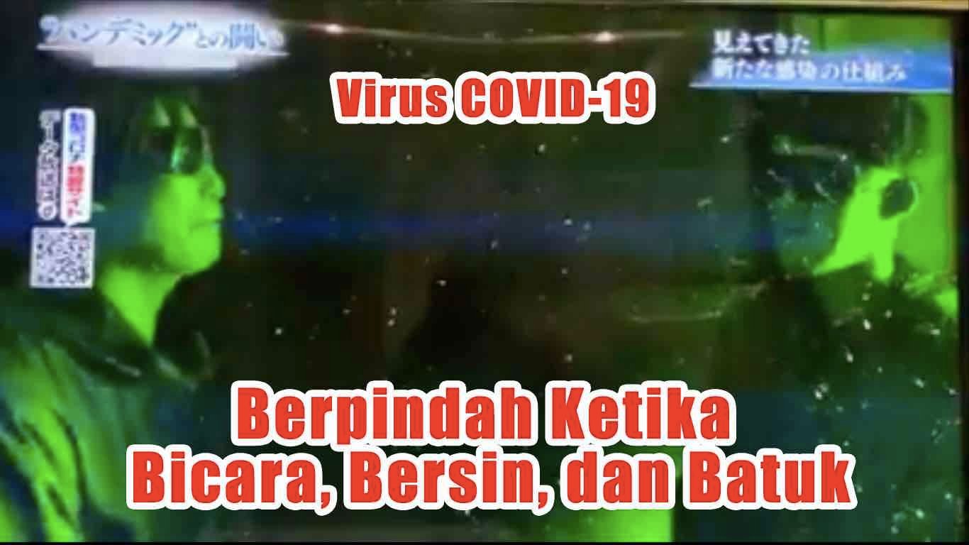 Dalam video yang tersebar di media sosial ini awalnya melakukan percobaan seseorang bersin. Cipratan partikel yang terbang terlihat kasat mata adalah droplet sebesar 1 mm, langsung jatuh ke lantai.