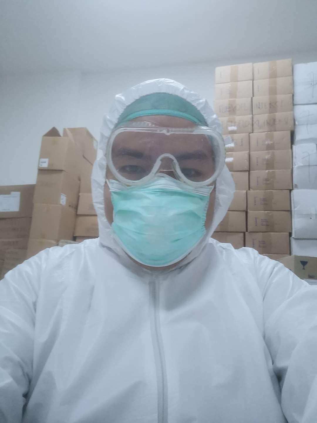 Saya ditempatkan di gudang farmasi sekaligus bertagung jawab memastikan ketersediaan stok Alat Kesehatan dan Alat Pelindung Diri (APD) buat seluruh tenaga kesehatan dan petugas.
