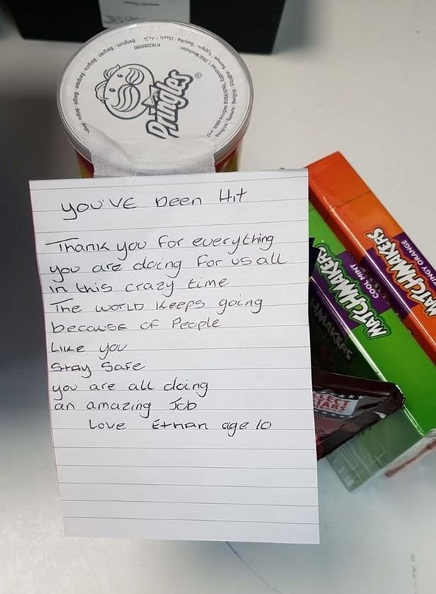 Bocah itu juga meninggalkan cokelat untuk apoteker yang bekerja sepanjang waktu (Gambar: Liverpool Echo WS)