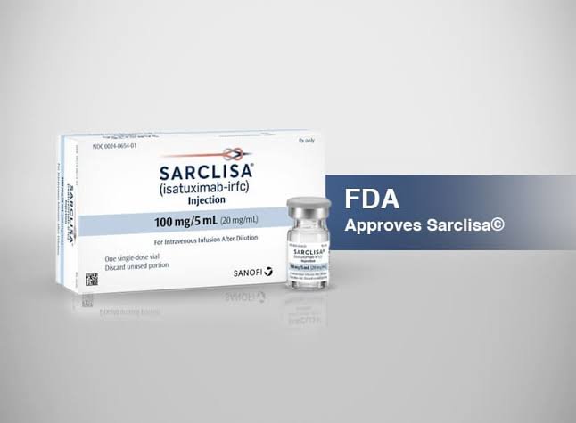 Sarclisa, diberikan melalui infus intravena (IV), yang merupakan antibodi sitolitik CD38-directed yang bekerja dengan membantu sel-sel tertentu dalam sistem kekebalan tubuh untuk menyerang beberapa sel kanker myeloma. FDA memberikan persetujuan Sarclisa kepada Sanofi-Aventis A.S. LLC.