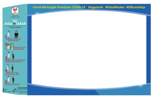 PP IAI memberikan desain infografis tentang physical distancing untuk disertakan dengan frame dalam 2 format yang bisa dipilih, yakni untuk sisi kiri dan bawah.
