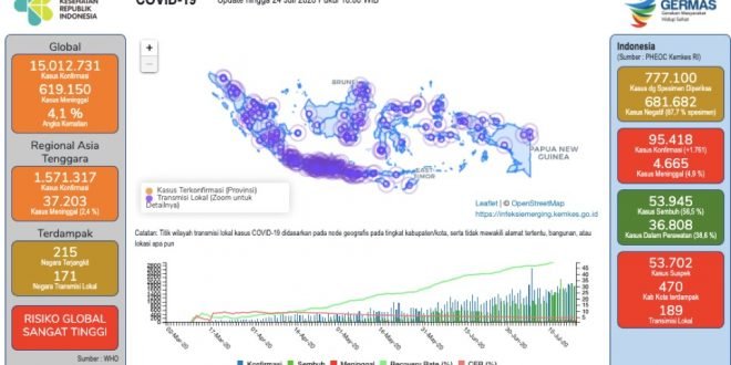 Per tanggal 24 Juli 2020, Kementrian Kesehatan (Kemenkes) RI rilis jumlah positif COVID-19 di Indonesia mencapai 95.418 orang dengan kasus harian masih cukup tinggi yakni 1.761 orang.