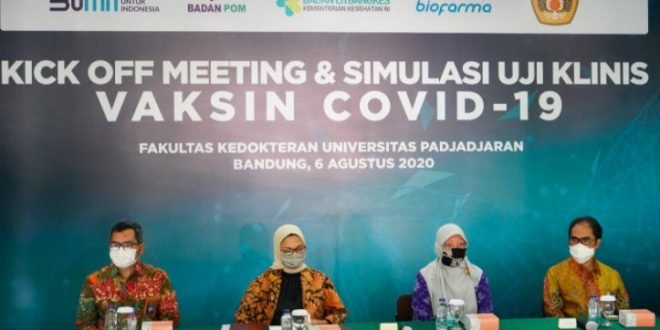 Hal ini disampaikan Direktur Utama Bio Farma, Honesti Basyir dalam acara Kick Off Meeting di Fakultas Kedokteran Universitas Padjadjaran (FK-UNPAD) Bandung (6/8/2020). Acara kick off meeting ini, merupakan simulasi sebelum pelaksanaan puncak uji klinis fase 3 pada pertengahan bulan Agustus 2020 mendatang untuk vaksin CoronaVac produksi Sinovac, Tiongkok .