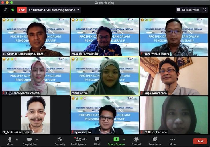 Hal ini disampaikan oleh salah satu narasumber, dr. Cosmos Mangunsong Sp.M(K), dalam webinar yang diadakan oleh Pusat Studi Pengembangan Sediaan Farmasi Fakultas Farmasi Universitas Padjadjaran Fakultas Farmasi Universitas Padjadjaran bekerjasama dengan Pengurus Pusat Ikatan Apoteker Indonesia (PP IAI), serta Majalah Farmasetika sebagai media partner dengan tema “Prospek dan Tantangan dalam Terapi Regeneratif” (19/09/2020).