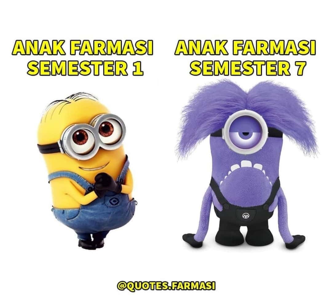 Perbandingan anak farmasi semester 1 dan semester 7 versi minion.