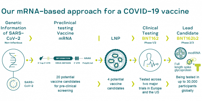 Majalah Farmasetika – Penelitian penemuan vaksin untuk mempercepat hentikan pandemi COVID-19 terus dilakukan. Baru-baru ini, perusahaan BioNTech yang berkolaborasi dengan Pfizer mengumumkan hasil uji klinisnya yang efektif 90% mampu mencegah COVID-19.