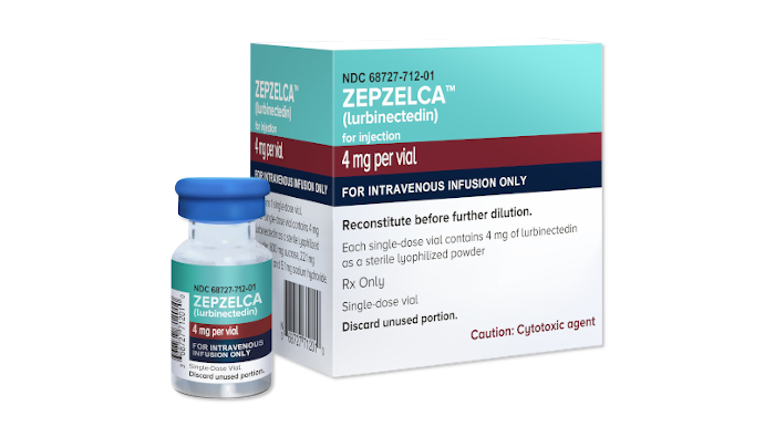 Zepzelca, dari Jazz Pharmaceuticals dan PharmaMar, adalah agen alkilasi yang mengikat DNA dan mengganggu faktor transkripsi yang berperan dalam pertumbuhan sel kanker. Obat tersebut, yang berasal dari senyawa yang diisolasi dari air laut, juga menghambat aktivitas sel kekebalan tertentu dan produksi sitokin yang memacu pertumbuhan tumor.