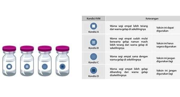 Ada sebuah alat indikator yang penting yang harus diketahui semua tenaga kesehatan, terutama apoteker yang bertanggung jawab dalam menjaga alur distribusi vaksin ini, yakni Vaccine Vial Monitor (VVM).
