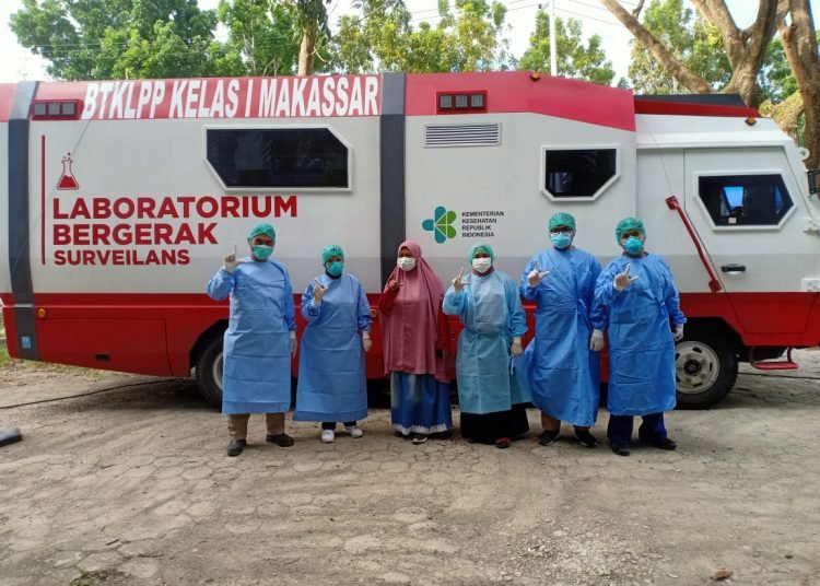 Di hari pertama, Rabu (20/1) tim BTKLPP Makassar bekerjasama dengan analis relawan laboratorium kesehatan mobil Lab bergerak yang diparkir depan RS Regional Sulbar, Jl RE Martadinata ini telah mengambil sampel lewat swab 28 orang.