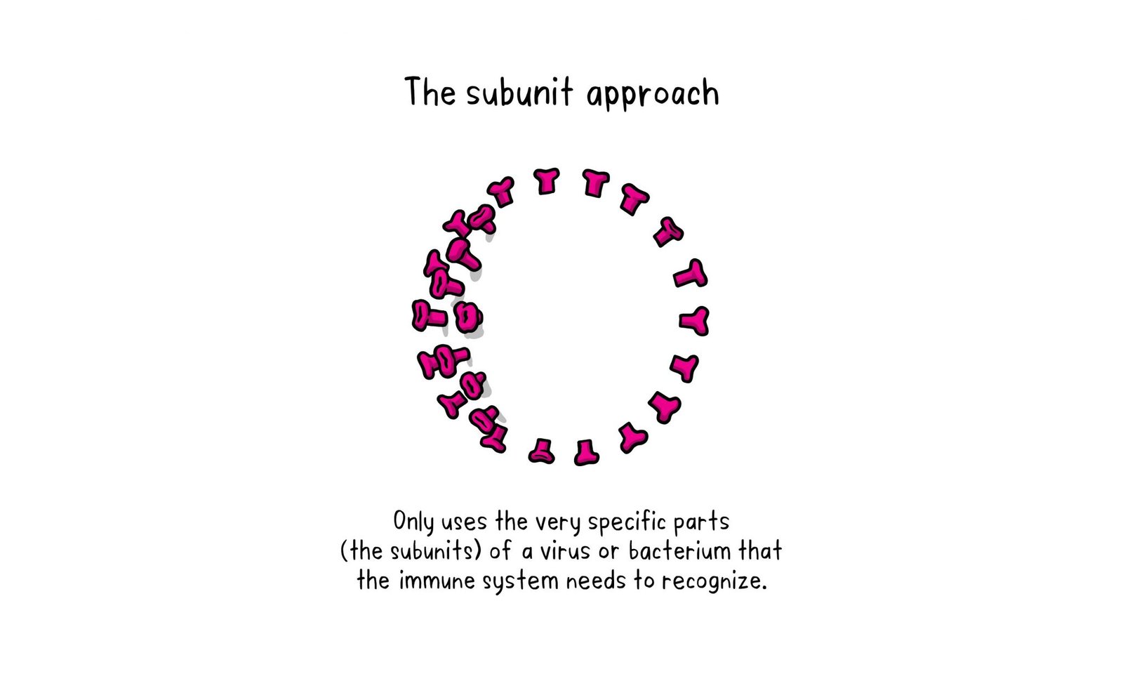 Sebagian besar vaksin pada masa kanak-kanak merupakan vaksin subunit, melindungi orang dari penyakit seperti batuk rejan, tetanus, difteri dan meningitis meningokokus.