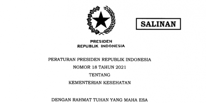 Inilah Perpres Nomor 18 Tahun 2021 tentang Kementerian Kesehatan https://setkab.go.id/inilah-perpres-nomor-18-tahun-2021-tentang-kementerian-kesehatan/