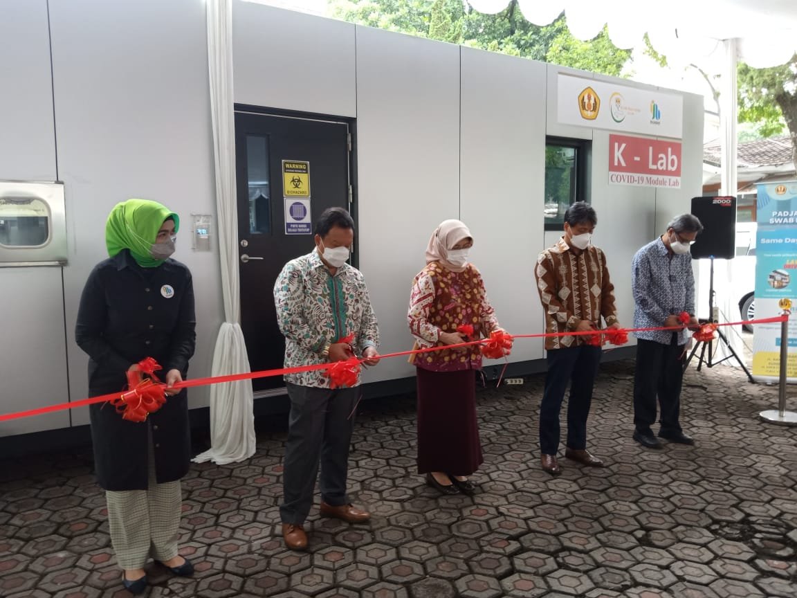 Peluncuran Padjadjaran Swab PCR Test dilakukan oleh Rektor Unpad Prof. Rina Indiastuti bersama Dirut Injabar Unpad Prof. Dr. Keri Lestari, Asisten Administrasi Pemprov Jabar Dudi Sudrajat, Presdir LG International Indonesia Lee Chang Yun serta Dirut Klinik Kesehatan Unpad Prof. Achmad Husein S. Kartamihardja di halaman Klinik Kesehatan Unpad, Jalan Dipati Ukur No. 46, Bandung, Kamis (29/4).