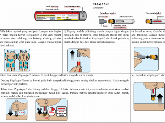 Penggunaan sediaan Zegalogue® Autoinjector dapat dilakukan dengan cara :