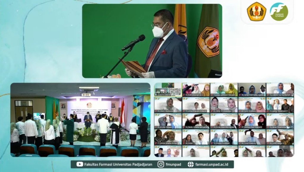 Pengambilan Sumpah/Janji Apoteker yang merupakan kali keempat diselenggarakan secara hybrid yaitu kombinasi antara penyelenggaraan luring dan daring diikuti oleh 44 apoteker yang disiarkan secara langsung melalui streaming Youtube Fakultas Farmasi dan dipandu oleh Komite Farmasi Nasional (KFN) sebagai representasi Kementerian Kesehatan Republik Indonesia.