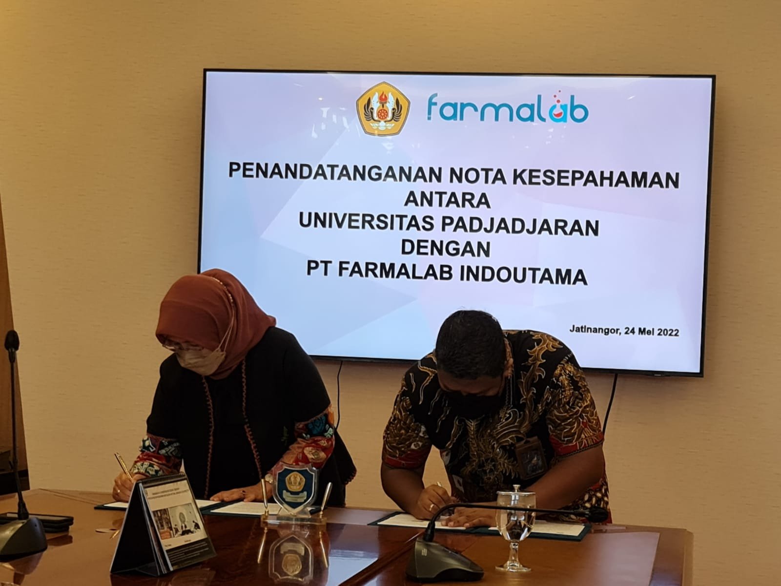 Kerja sama diwujudkan melalui penandatanganan Nota Kesepahaman oleh Rektor Unpad Prof. Rina Indiastuti dengan Direktur PT. Farmalab Indonesia Arie Genipa Suhendi di Ruang Rapat Rektor Gedung Rektorat Unpad, Jatinangor, Selasa (24/5/2022).
