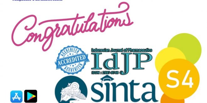 Majalah Farmasetika – Sebuah jurnal yang diterbitkan oleh Departemen Farmasetika, Fakultas Farmasi, Universitas Padjadjaran, Indonesian Journal of Pharmaceutics (IdJP), meraih akreditasi Sinta 4 melalui Surat Keputusan nomor 0385/E5.3/KI.02.00/2022 perihal Pemberitahuan Hasil Akreditasi Jurnal Ilmiah Periode 1 Tahun 2022 dari Kementrian Pendidikan dan Kebudayaan Republik Indonesia (Kemendikbud RI) (6/6/2022).