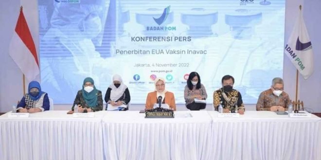 “Dengan pertimbangan terhadap aspek keamanan, efikasi/imunogenisitas, dan pemenuhan CPOB, maka Vaksin Inavac telah disetujui dengan indikasi sebagai imunisasi aktif untuk pencegahan COVID-19 yang disebabkan oleh SARS CoV-2 pada individu berusia 18 tahun ke atas,” jelas Kepala BPOM RI, Penny K. Lukito dalam Konferensi Pers Pesetujuan Vaksin Inavac (Vaksin Merah Putih) di Kawasan BPOM RI, Jumat (04/11/2022).
