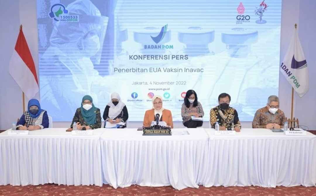“Dengan pertimbangan terhadap aspek keamanan, efikasi/imunogenisitas, dan pemenuhan CPOB, maka Vaksin Inavac telah disetujui dengan indikasi sebagai imunisasi aktif untuk pencegahan COVID-19 yang disebabkan oleh SARS CoV-2 pada individu berusia 18 tahun ke atas,” jelas Kepala BPOM RI, Penny K. Lukito dalam Konferensi Pers Pesetujuan Vaksin Inavac (Vaksin Merah Putih) di Kawasan BPOM RI, Jumat (04/11/2022).