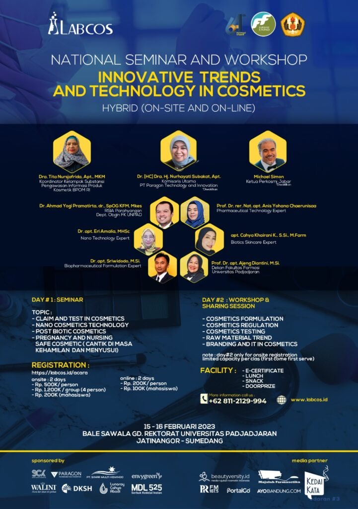 Perhelatan ini dipersembahkan Mahasiswa Magister Farmasi Konsentrasi Kosmetik dengan Pusat Studi Pengembangan Sediaan Farmasi Fakultas Farmasi UNPAD bekerjasama dengan LABCOS serta sejumlah sponsor. LABCOS adalah Laboratorium Kosmetik yang dibangun Fakultas Farmasi Unpad sebagai laboratorium Riset dan Pengembangan, Formulasi, Pengujian Mutu, dan Uji Klaim Produk Bahan Baku dan Produk Jadi Kosmetik.