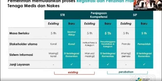 Penyederhanaan proses tidak hanya dengan STR berlaku seumur hidup, pemenuhan kompetensi akan dijadikan dasar perizinan, dan proses regitrasi serta perizinan terintegrasi pusat dari daerah sehingga transparan dan akuntabel.