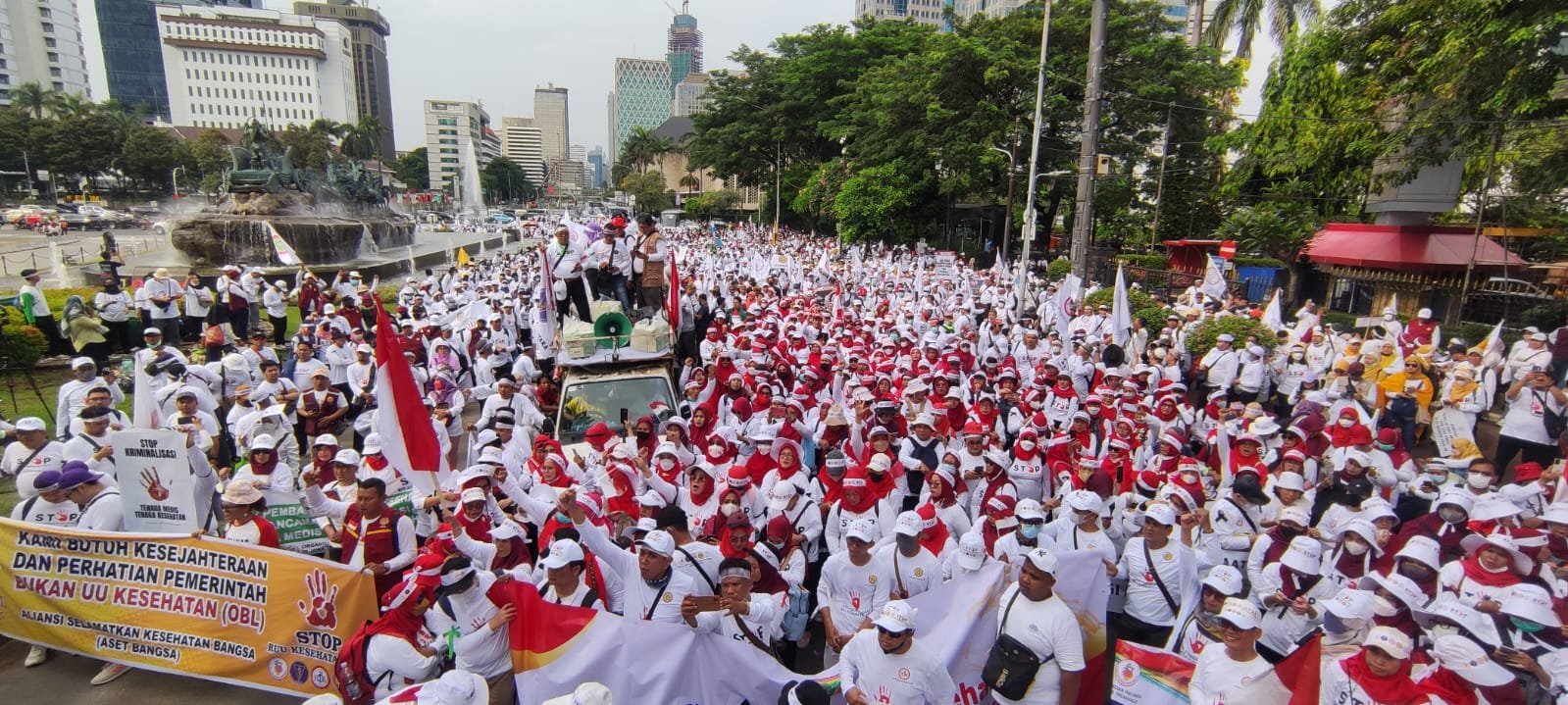 Sebagai tanggapan, lima organisasi profesi kesehatan mengadakan aksi demonstrasi di depan Gedung DPR RI dan berencana untuk mogok kerja sebagai protes terhadap pengesahan RUU Kesehatan menjadi UU. Majalah Farmasetika merangkum beberapa alasan penolakan terhadap UU Kesehatan ini sebagai berikut: