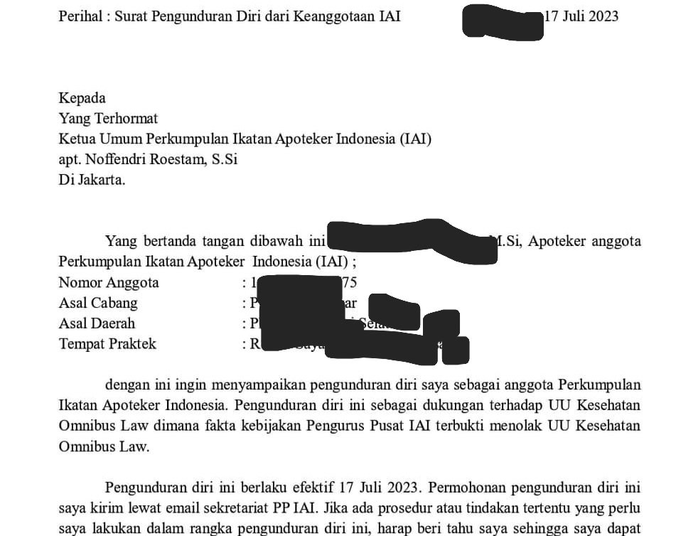Majalah Farmasetika – Pasca munculnya surat undur diri dari salah seorang apoteker dari keanggotaan organisasi Ikatan Apoteker Indonesia (IAI) di media sosial, memunculkan pro dan kontra dikalangan Netizen apoteker.