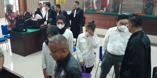 Tampak pula Ketua Ikatan Apoteker Indonesia, apt Noffendri, mendampingi ketiga terdakwa apoteker.