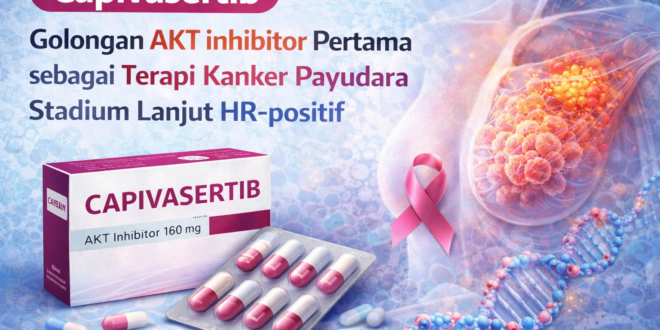 Majalah Farmasetika – Kanker payudara merupakan salah satu kanker dengan angka kejadian tertinggi dan angka kematian tertinggi di dunia. Seiring dengan adanya permasalahan resistensi terhadap terapi yang tersedia, pengembangan capivarsetib, terapi golongan AKT inhibitor pertama yang disetujui oleh FDA diharapkan menjadi opsi terapi yang baru untuk pasien kanker payudara metastatik.