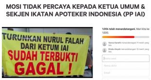 Majalah Farmasetika – Petisi online terkait “Mosi tidak percaya kepada Ketua Umum (Ketum) dan Sekretaris Jenderal Ikatan Apoteker Indonesia (PP IAI)” telah ditandatangani oleh lebih dari 1000 orang (3/7/2020). Petisi ini dibuat oleh Gunawan Budiyanto (2/7/2020) di situs Change.org dengan mengatasnamakan seluruh Pengurus Cabang (PC) Ikatan Apoteker Indonesia Se-Daerah Istimewa …
