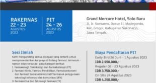 Majalah Farmasetika – Ikatan Apoteker Indonesia (IAI) kembali mengadakan agenda tahunan Pekan Ilmiah Tahunan (PIT) IAI dan Rapat Kerja Nasional (Rakernas) 2023 dengan topik Synergizing Global Innovations: Empowering Pharmacy for Sustainable Global Health Solutions dengan total 25 SKP (Satuan Kredit Partisipasi). PIT dan Rakernas IAI 2023 diagendakan pada tanggal 24 …